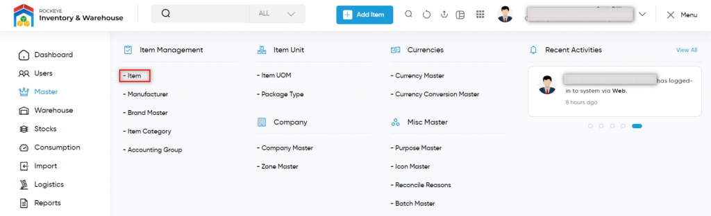 - Item UOM (Required): Select a Unit for the item from the Dropdown. For example, if the item is Grease then select the unit as Gram (or), Kilo Gram.