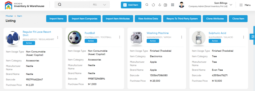 - On clicking the Import Items Button, user will be able to import the Items. Help for uploading the item data will be displayed here.