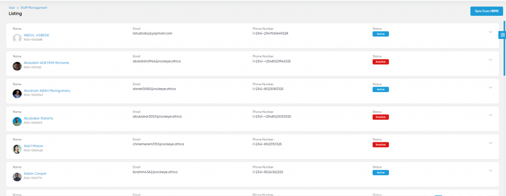 Displays the list of staff to the User. User will be able to search for staff and their departments using the filter option which is provided on the list. User can view the listing in two ways, by clicking on the “Change View” button the admin will have the option to change the view.